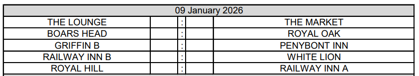 We as the committee have gone to great lengths to get sponsors for all our competitions and try to raise money for the good and benefit of the league, therefore, please can you as league members give us your very best support by attending as many of the competitions and cup matches that we have organised. Regardless of ability it is always nice to have a good support from all the teams and leagues to all our fixtures and it is a good way of meeting other players. Remember it is not about the winning but the taking part that counts. All our fixtures will be taking part in venues with Oswestry and as such gives everyone in the league the chance to attend local venues, so please come along as it would be great to meet you all.