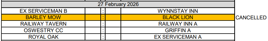 All fixtures will be updated when required. Team Captains to keep League secretary up to date of all fixtures that are rescheduled.