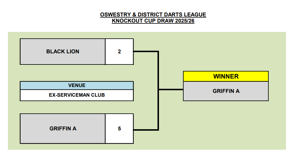 - Singles matches will be best of 3 legs, 501, double to start and finish.