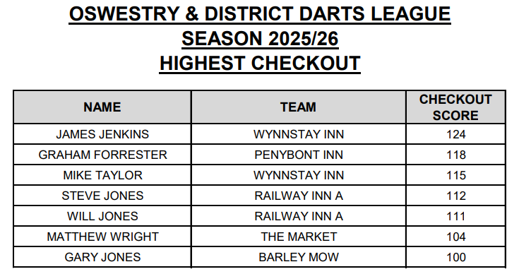 All ton + finishes will be published here as and when the results come in to the League Secretary, any discrepancies then please contact the League secretary soonest.